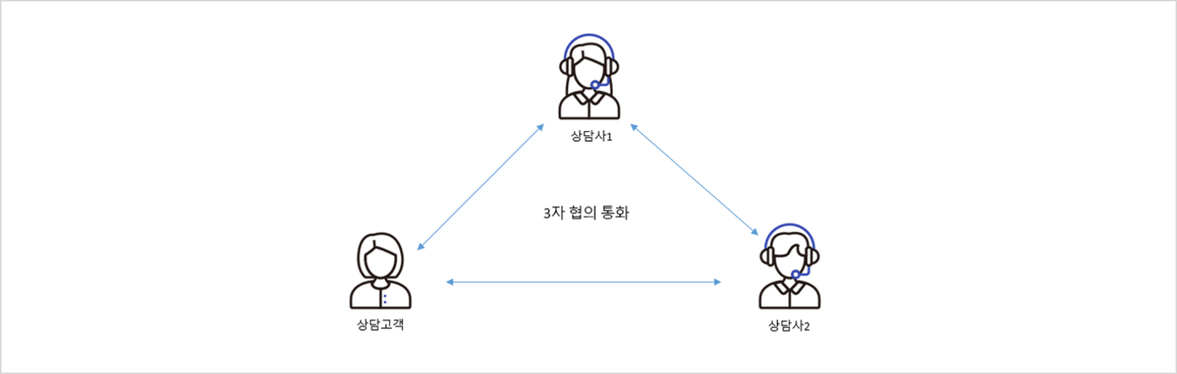 상담 애플리케이션을 이용하여 상담사와 고객간 상담 통화중에 다자간 회의(협의 전환)기능을 이용하여 상담 고객과 상담사간에 다자간 회의(3자 회의 통화)를 진행할 수 있습니다.