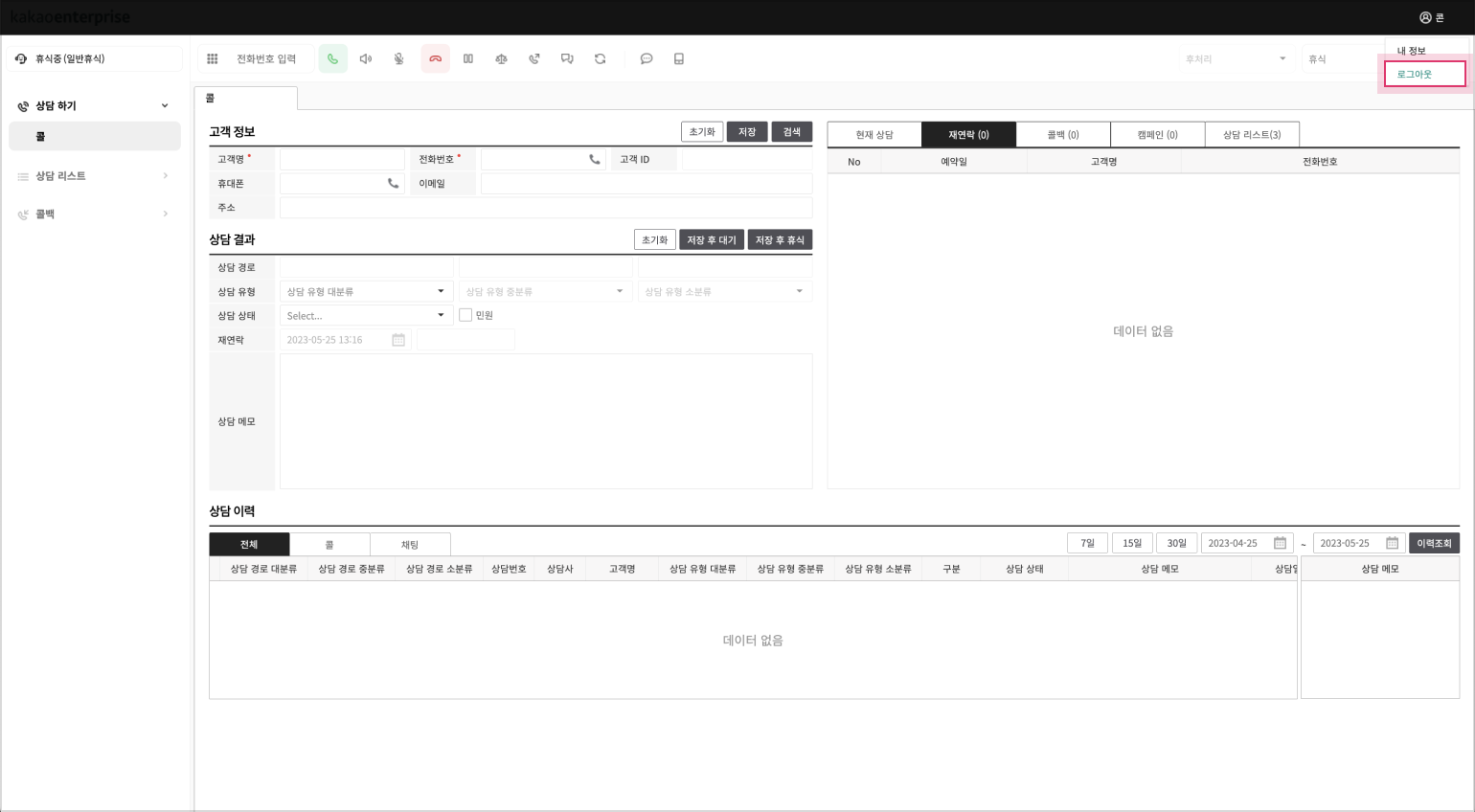 콜 상담 상태 변경 및 로그아웃